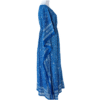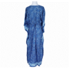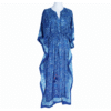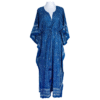 A full-length kaftan in hand block prints accented with silver khari work. Front V neck with a small slit, and an open side flap of 7”, with a drawstring waistline for a flexible fit to suit all body types. A kaftan for beach, resort, vacation, cruise, pool, home parties, and or lounge around. This kaftan embodies sophistication in casual wear.