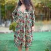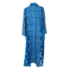 Mid-calf length with a beautiful flowing shape, this is a lovely easy-wear dress in different patterns of Indigo block prints put together. It has a V-neck with a 2” flat collar. With a slight High-Low at the length, the dress has highlighted the feature of concealed pockets.