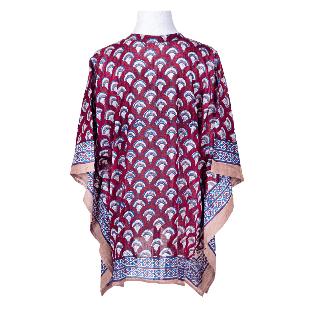 Soft feel, comfortable superior cotton print Kaftan Top. Easy breezy look and feel with a crew neckline with a button-down front opening so it can be worn closed or left completely open over a T-shirt or cami. Versatile comfort wear that suits all body types. Wear it over jeans or casual pants.