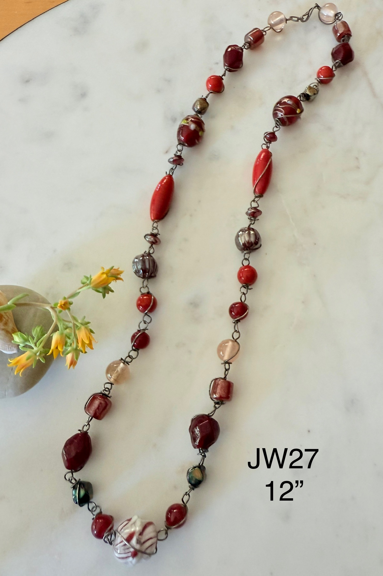 Hand-strung with care, each necklace measures approximately 12” in length and features a thoughtfully arranged pattern that feels striking on its own yet easy to layer with other favorites. Perfect for those who love artful, one-of-a-kind jewelry that brings color, character, and handcrafted beauty to everyday wear.
