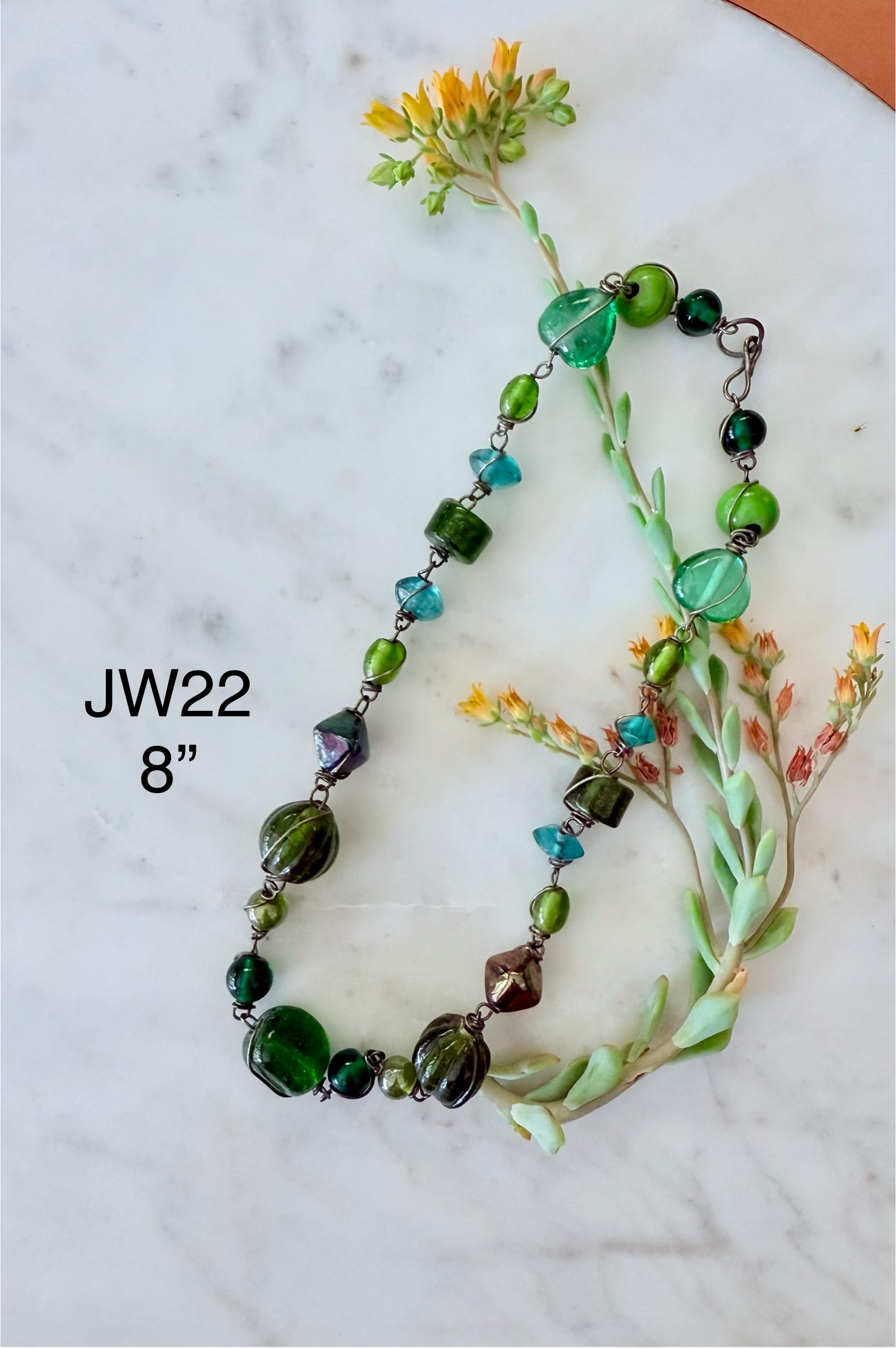 Hand-strung with care, each necklace measures approximately 8” in length and features a thoughtfully arranged pattern that feels striking on its own yet easy to layer with other favorites. Perfect for those who love artful, one-of-a-kind jewelry that brings color, character, and handcrafted beauty to everyday wear.
