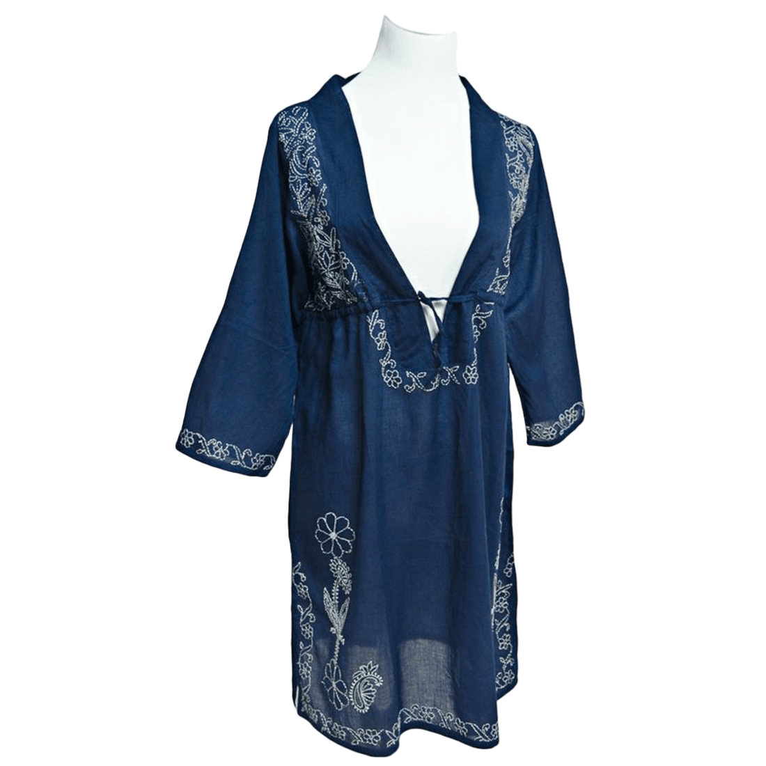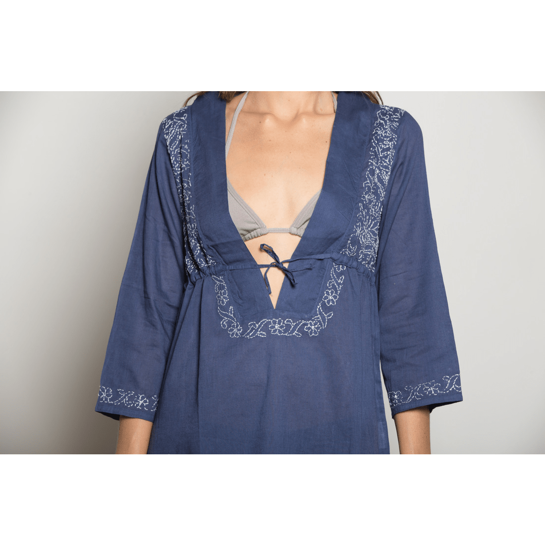 Soft feel, comfortable superior cotton with fine hand embroidery Cover-up. A deep drop neckline with a waistline drawstring gives the flexibility of fitting. 3/4 sleeve length and side slits. Great for poolside party wear or looking for bridesmaids' gifts these swim covers are elegant to wear for all age types.