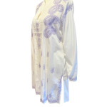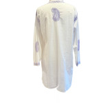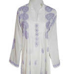 Evergreen style in comfortwear! Superior quality cotton Tunic with front pleats and embroidery motifs. High collar tunic having full sleeves and side slits. The top is of highly durable thick cotton that would not require any slip inside. Back is accented with a matching embroidered motif. Wear it over leggings, or jeans.