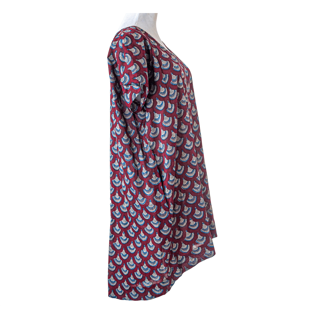 • Loose around chest and waist, hi-lo hem for flowy movement