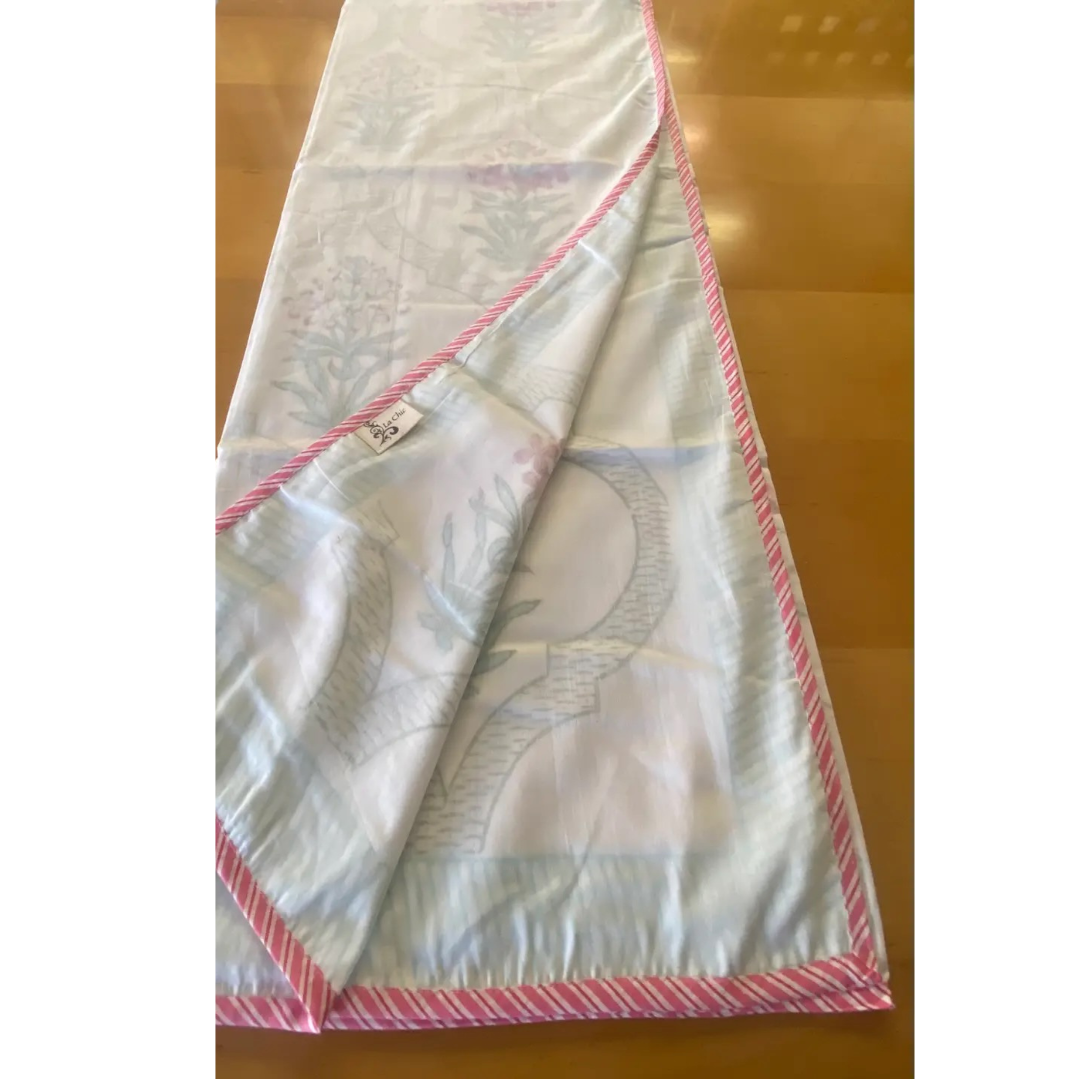 Wrap yourself in the luxurious softness of our reversible cotton dohar, crafted with layers of the finest cotton for a light yet cozy feel. Featuring hand-block printed patterns, each dohar is uniquely elegant, offering two stunning designs in one.