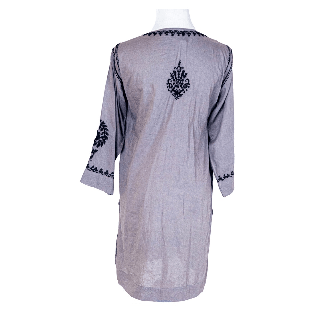 Soft feel, airy, and comfortable tunic with exceptional hand embroidery that made this tunic stand out as our bestseller! Round neckline with a small slit and adorned with crocheted accent buttons. It has ¾ sleeves that are also accented with the matching motif. Back is accented with an embroidered motif for a fully authentic look. Wear it over leggings or skinny jeans.